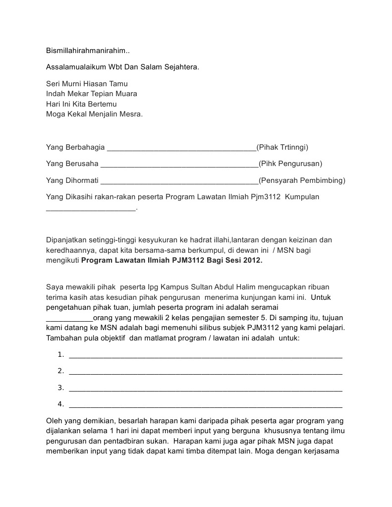 Thank you for a job well. Edit teks ucapan pengacara majlis hari gabungan pelajar 1 Maria Ayie. Contoh Surat Wakil Lawatan Tapak - Anda perlukan bantuan pihak ketiga untuk bantu anda seperti hal kewangan surat perundangan dan lain lain lagi.